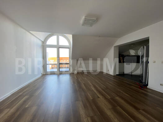 Die helle und freundliche Maisonette-Wohnung ist im Dachgeschoss eines Appartementhauses gelegen. Zur Ausstattung des Hauses gehören ein Fahrstuhl und eine Tiefgarage. Im Keller befinden sich Fahrradabstellmöglichkeiten und ein Raum mit Waschmaschinen und Wäschetrocknern zur allgemeinen Nutzung. Im unteren Bereich der Wohnung befinden sich das Wohnzimmer mit offener Küche und Zugang zum Balkon, der Flur und das Gäste-WC. Über eine Treppe im Flur gelangen Sie in den oberen offenen Wohnbereich. V...