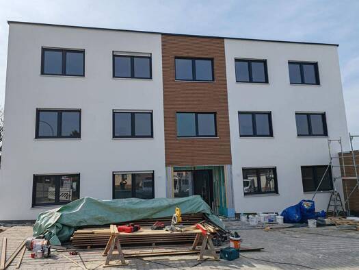 Diese moderne Neubau-Erdgeschosswohnung wird ab dem 01. Mai 2026 erstmals vermietet und bietet Ihnen auf großzügigem Grundriss alles, was Sie für ein komfortables Zuhause benötigen. Die Wohnung verfügt über vier schöne Zimmer, darunter drei geräumige Schlafzimmer sowie einen hellen Wohnbereich, der durch die Möglichkeit eines Kaminanschlusses für einen Pelletofen eine besonders behagliche Atmosphäre ermöglicht. Die hochwertige Einbauküche, für die ein monatlicher Abschlag von 90 € berechnet wir...