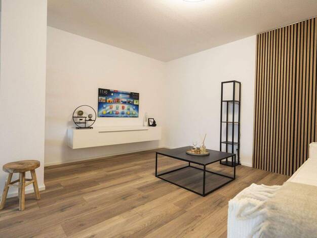 Willkommen in Ihrem neuen Zuhause – einem lichtdurchfluteten Wohn(t)raum, der modernes Design mit durchdachter Funktionalität vereint. Diese elegant geschnittene Gartenwohnung beeindruckt mit einer großzügigen Terrasse in sonniger Südostausrichtung, die zu entspannten Stunden im Freien einlädt. Ob Frühstück in der Morgensonne oder ein gemütliches Abendglas im Grünen – hier genießen Sie stilvolle Erholung direkt vor der Tür. Der offen gestaltete Wohn-, Ess- und Kochbereich schafft eine einladend...