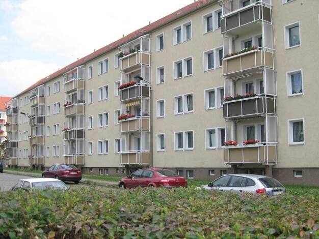 Die Wohnanlage verfügt über einen großen, begrünten Hof und ist sehr schön gelegen. Einkaufsmöglichkeiten und Verkehrsanbindungen sind in unmittelbarer Nähe zu erreichen. Die Autobahn A 14 ist in kürzester Zeit erreichbar. Parkmöglichkeiten sind vor dem Haus vorhanden.