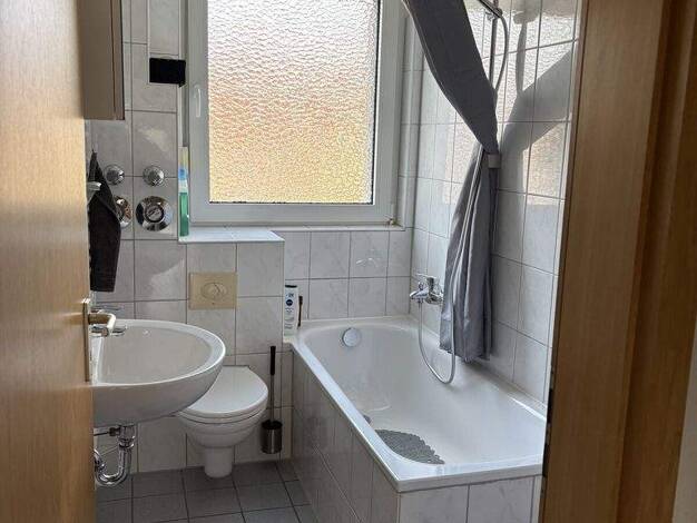 Geräumige und helle Wohnung mit Balkon. Separate Küche. Das innenliegende Bad ist ausgestattet mit Hänge-WC, Waschtisch und Badewanne.