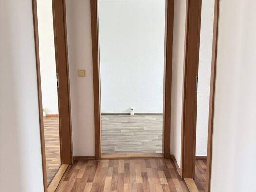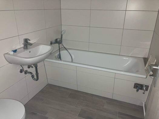 Die Wohnung wurde umfangreich hergerichtet. Fliesen, Sanitärobjekte, Innentüren und Bodenbeläge wurden erneuert. Die Wände und Decken wurden gespachtelt und weiß gestrichen.