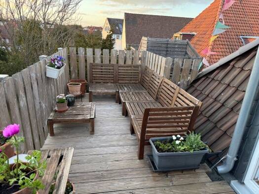 Die Wohnung befindet sich in einem schönen Stadthaus. Sie erreichen die Wohnung über einen Laubengang. Die Wohnung empfängt Sie mit einem großzügigen Flur, davon abgehend finden Sie ein Duschbad. Ebenfalls abgehend vom Flur finden Sie das große Schlafzimmer, sowie das lichtdurchflutete Wohnzimmer. Abschließend bietet die Wohnung eine große Dachterrasse , die zum Verweilen einlädt.