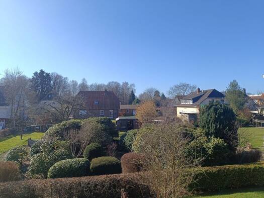 In ruhiger, zentraler Lage erwartet Sie diese helle, ca. 95 m² große Wohnung in einem gepflegten Zweifamilienhaus. Die Wohnung verteilt sich auf Erdgeschoss und 1. Obergeschoss: Im Erdgeschoss befinden sich die moderne Nolte-Küche sowie das Badezimmer mit Dusche und WC. Im Obergeschoss liegt das großzügige, lichtdurchflutete Wohnzimmer und weitere Räume mit viel Platz für Familie oder Homeoffice. Von der Terrasse mit Zugang zum Garten genießen Sie sonnige Stunden im Freien. Ein Carport und ein ...