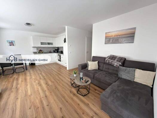 Die angebotene 2-Zimmer-Wohnung befindet sich in einem Neubau-Mehrfamilienhaus aus dem Jahr 2025 und bietet modernen Wohnkomfort auf ca. 93,56m². Der großzügige Wohnbereich mit offener Einbauküche (i...