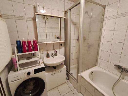 Erstbezug nach Renovierung Die Dachfenster sind erneuert worden, das Bad ist komplett neu gefliest und es wurden neue Sanitäreinrichtungen eingebaut. Die Fußböden sind komplett erneuert worden, es handelt sich um einen Vinylboden im Fliesenmuster. Alle Wände sind neu tapeziert sowie weiß gestrichen. Diese Wohnung befindet sich im 3. Obergeschoss und ist wie folgt aufgeteilt: - Wohn-/ Esszimmer - Schlafzimmer - Arbeits- oder Kinderzimmer - Küche - Diele - Badezimmer mit Dusche Die Waschmaschine ...