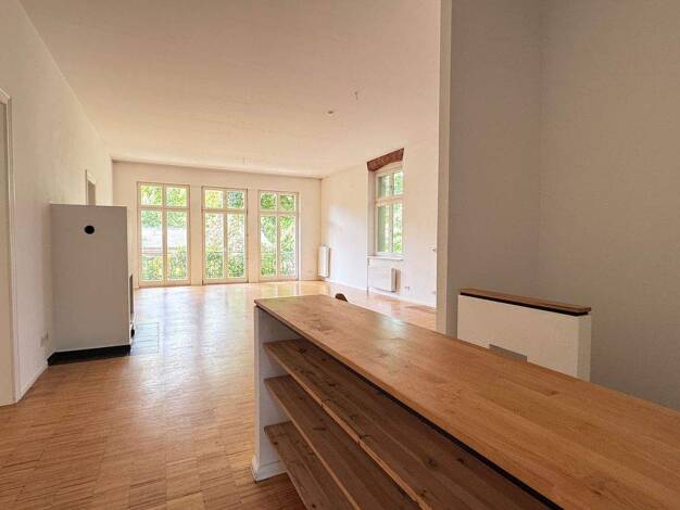 Es handelt sich hierbei um eine Maisonettewohnung, die sich über das Erdgeschoss und dem Souterrainbereich erstreckt. Oben verfügt die Wohnung über 2 Schlafzimmer, einem offenen und sehr großzügigen ...