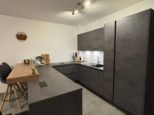 Tolle 3-Zimmer Wohnungen in Energieeffizientem KFW55 Haus, Fußbodenheizung, zentrale Luft-Wärmepumpe, kontrollierte Wohnraumlüftung durch dezentrale in den Wohnungen installierte, moderne Einbauküchen in Hochglanz weiß, ebenerdige Duschen, moderne Betonfliesenoptik in Format 30x60cm, 3-fach Fensterverglasung der Firma WERU (innen und außen weiß), elektrische Rolladensysteme, elektrische Bad-/Handtuchheizkörper, WCs mit Softclose System, Waschmaschinen- und Trockneranschlüsse in Masterbad, Flies...