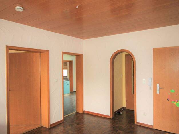 Wohnen in Prüm... gar nicht mehr so einfach, eine geräumige Wohnung zu finden, wo auch ein Kind sich wohl fühlt. Das haben Sie hier, denn die Wohnung liegt an einer normal befahrenen Strasse, sie liegt im Erdgeschoss und bietet Platz für eine kleine Familie oder auch für ein älteres Paar, denn die Räume sind großzügig geschnitten und auch mit Gehhilfe gut zu erreichen. Erdgeschoss: **************************** Wohn-Essbereich: ca. 14 qm GästeWC: ca. 1 qm Garderobe: ca. 1 qm Küche: ca. 12 qm Ess...