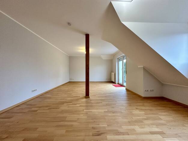 Diese ansprechend renovierte Dachgeschosswohnung im 2. Obergeschoss eines gepflegten Mehrfamilienhauses überzeugt durch ihre helle, freundliche Atmosphäre und eine durchdachte Raumaufteilung mit insgesamt drei gut geschnittenen Zimmern. Herzstück der Wohnung ist der großzügige Wohn- und Essbereich mit direktem Zugang zum Balkon. Große Fensterflächen sowie Dachflächenfenster sorgen für ein lichtdurchflutetes Ambiente und ein angenehmes Wohngefühl! Die separate Küche ist mit einer hochwertigen un...