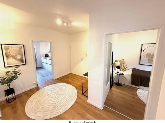 Herzlich willkommen in Ihrem neuen Zuhause! Auf ca. 75 m² Wohnfläche erwartet Sie eine stilvolle Zwei-Zimmer-Wohnung, welche durch ihren durchdachten Grundriss und ihre hellen Räume überzeugt. Bereits beim Betreten der Wohnung empfängt Sie eine großzügige Diele, die ausreichend Platz für eine Garderobe bietet. Rechterhand gelangen Sie in die geräumige Küche, die mit einer Einbauküche ausgestattet ist und viel Stauraum sowie die Möglichkeit für gemütliche Kochabende bietet. Das angrenzende Badez...