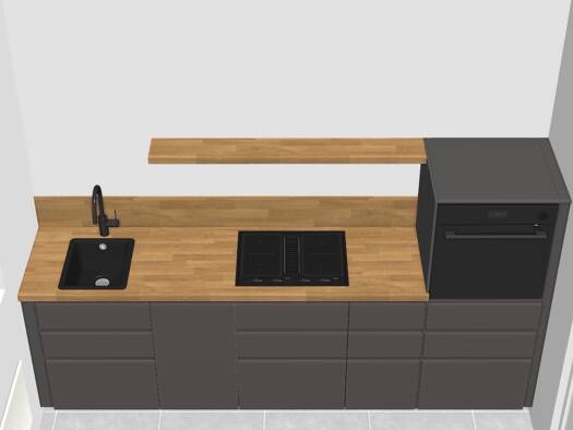 Das Appartement hat ca. 35m² und besteht aus einem Wohn-Eß-Bereich mit offener Küche inkl. Einbauküche, Zugang zum Balkon und einem Duschbad ohne Fenster.