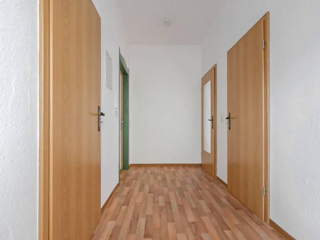 Helle 3 Raumwohnung mit Blick über Sebnitz. Die Wohnung verfügt über ein Tageslichtbad mit einer Badewanne und einer Dusche. Alle Räume sind mit Raufaser tapeziert und weiß gestrichen. Fußboden PVC.