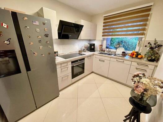 Die hier angebotene, exklusive Erdgeschosswohnung bietet unter anderem Ruhe, Moderne, 2 Terrassen, 1 PKW-Stellplatz und einen schönen Gartenbereich. Sie verfügt über 3 Zimmer, verteilt auf einer Wohnfläche von ca. 74 m². Vom Hauseingang, der allein Ihnen und der darüber liegenden Maisonettewohnung zur Verfügung steht, gelangen Sie in die Wohnung. Von hier aus erreichen Sie das großzügige, sonnige Wohnzimmer mit offener Küche und davor liegender Terrasse mit Süd-Ausrichtung. Die beiden Schlafzim...