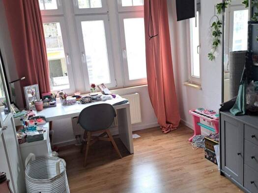 Die angebotene 2-Zimmer-Wohnung verfügt über Wohnraum mit Balkon, zum Wohnraum offene Küche, Diele, Schlafzimmer sowie Tageslichtbad mit Dusche, Waschbecken, WC und WM-Anschluss. Ein Kellerraum wird dem Mieter kostenfrei zur Verfügung gestellt. Die Wohnung wurde 2025 umfassens saniert - Bad neu gefliest mit neuer Duschabtrennung, neues Laminat in allen Räumen. Öffentliche Parkmöglichkeiten befinden sich unmittelbar vor dem Haus.