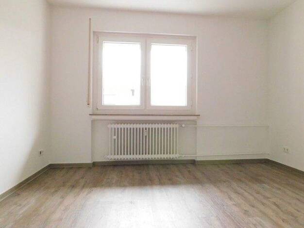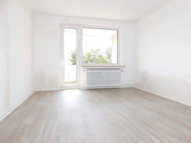 Über das Wohnzimmer gelangt man auf die sonnige Loggia. Neben einem Schlafzimmer findet man zudem eine praktisch geschnittene Küche vor. Das Tageslichtbad mit Wanne und die separate Toilette wurden weiß/anthrazit gefliest. In der kompletten Wohnung wurde Design-Vinylbelag in Cappuccino-Optik verlegt. Vor Einzug werden die Wände mit Rauhfaser tapeziert und weiß gestrichen. Die Decken, sowie Heizkörper erhalten ebenfalls einen Neuanstrich.