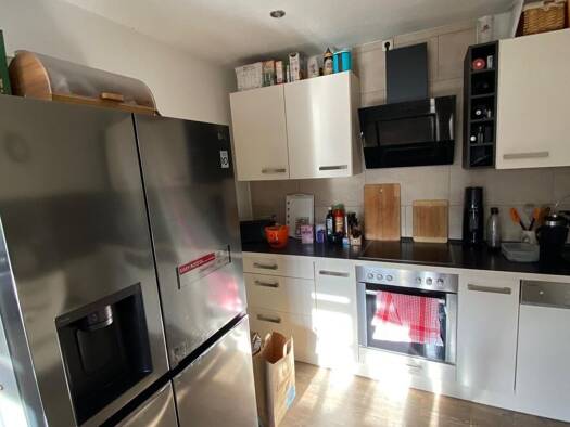 Die Wohnung befindet sich im Gebäudekomplex III im 1.OG und erstreckt sich über drei Etagen. Im 1.OG befindet sich der Eingang zur Wohnung sowie das Wohnzimmer, die Küche und ein Badezimmer mit Dusch...