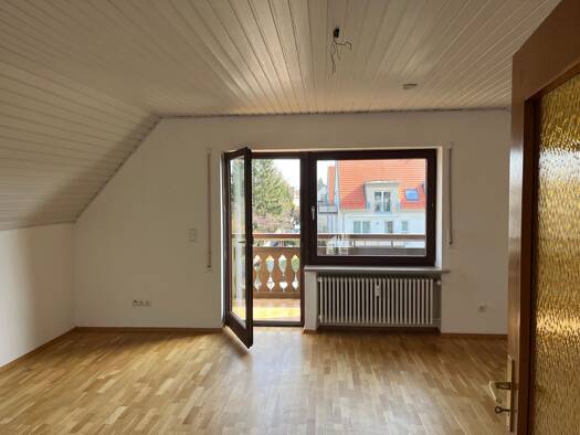 Helle und sehr gepflegte Dachgeschosswohnung in ruhiger, grüner Lage von Königsbrunn zu vermieten. Ideal für eine Einzelperson, die eine charmante Übergangslösung sucht. DIE HIGHLIGHTS - Großzügiges Wohnzimmer mit viel Tageslicht - Großer Süd-Balkon für sonnige Feierabende - Geräumige Wohnküche inkl. gepflegter Einbauküche - Ruhiges Schlafzimmer mit ausreichend Stellfläche - Bad in sauberem Retro-Look (technisch einwandfrei) BESONDERHEIT ZUM GRUNDRISS Die Wohnung hat keine separate Wohnungseing...