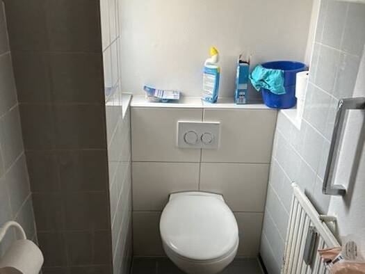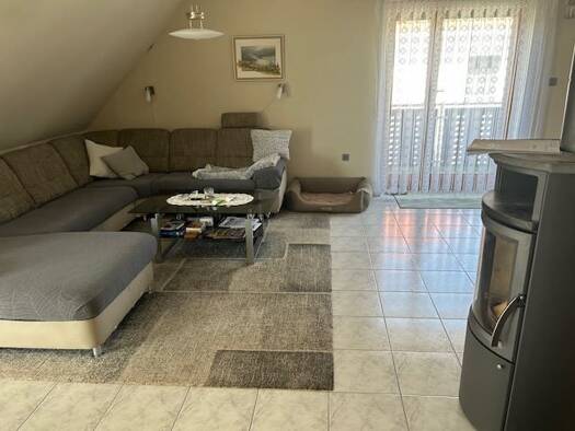 Aufteilung: Dachgeschosswohnung mit 4 Zimmern, Küche, Badezimmer, Flur, Balkon Gäste WC, mit ca.114 qm Wohnfläche. Ein Kellerraum mit Waschmaschinenanschluss gehört zur Wohnung. Eine Garage und der Garten dahinter, kann alleine von den Bewohnern der Dachgeschosswohnung genutzt werden, so dass man dort auch einen überdachten Sitzplatz, einen Grill, Sandkasten oder ein Planschbecken aufbauen kann. Ausstattung: Kaminofen im Wohnzimmer Einbauküche könnte vom Vormieter abgekauft werden für 2.500 €, ...