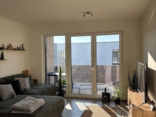 Wohnung ca. 80 qm innen Balkon ca. 5 qm Süd-Terrasse ca. 30 qm - Baujahr 2018 - sehr ruhige Lage am Rand der Bebauung - offener Blick in die freie Natur (siehe Bilder) - Helle, lichtdurchflutete Wohn...