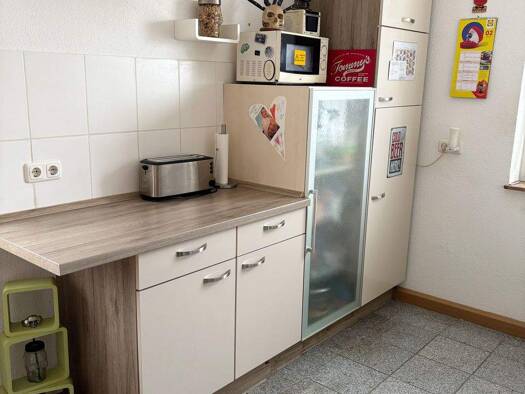 Die Wohnung ist durchgehend mit ansprechenden und pflegeleichten Fliesen ausgestattet. Im Jahr 1992/94 wurde diese attraktive Wohnung modernisiert. +Wohnen (Fliesen) +große Küche mit Einbauküche +Flu...