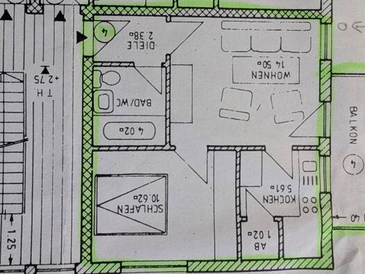 Helle 2,5 ZKB Mansardenwohnung mit offener Küche ohne Einbauküche Loggia in Südausrichtung ein kleinerer Balkon - Richtung Osten Waschraum Abstellraum für Fahrräder Online DSL-Check: Telekom mit bis ...