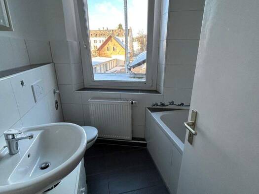 Die Zimmer der im 1 Obergeschoß liegenden Wohnung, sind alle von der Diele zu erreichen. Durch die angenehmen Zimmergrößen, kann man alles schön möblieren und sich schnell heimisch fühlen.