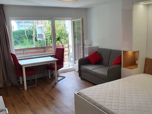 Objekt: 1-Zimmer Wohnung im Hochparterre in Solln in der Geigenbergerstraße, ruhig gelegen, mit fantastischem Blick ins Grüne, kernsaniert, hochwertig möbliert und vollständig ausgestattet. Preise & ...