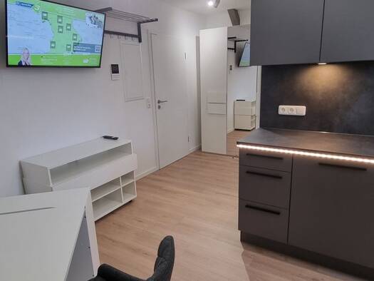 Die Wohnung liegt im Parterre eines Mehrfamilienhauses mit Terasse und herrlichem Blick ins Grüne. Die Wohnung hat ein Zimmer mit Kochnische, einen Flur und ein Bad mit Dusche, Wanne und Fenster. Das...
