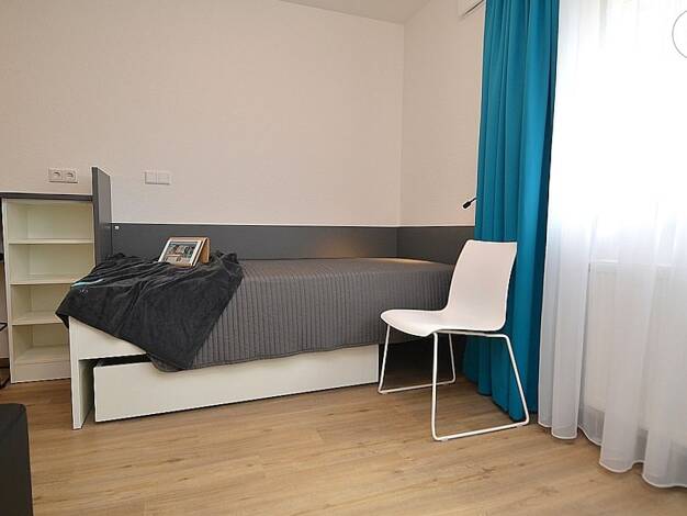 +++++++ Dieses Objekt kann nur möbliert angemietet werden +++++++ Hell möbliertes Apartment (Neubau) in Aschaffenburg Das ca. 20m² große Apartment liegt im Erdgeschoss eines großen Wohnkomplexes und ist mit Design-PVC-Boden ausgelegt. Der Wohnraum ist mit einer Single-Küche, welche mit einem Kühlschrank mit Tiefkühlfach, einer Mikrowelle mit Grillfunktion und zwei Cerankochfeldern ausgestattet ist, einem Essplatz, einem Schreibtisch, einem Einzelbett mit Nachttisch sowie mit einem Kleiderschran...