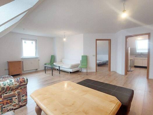 Hallo ich biete hier eine wunderschöne Helle Dachgeschosswohnung zur Miete an. Die Wohnung befindet sich in einem Mehrfamilienhaus. Die Wohnung hat einen tollen Essküchenbereich mit einer tollen Einbauküche. Speisekammer mit vorhandenem Anschluss für eine Waschmaschine. Ein großes Schlafzimmer. Ein Bad mit Dusche und Eckbadewanne. Und ein großes Wohnzimmer, das mittels Raumteiler etwas abgetrennt wurde, für eine Essecke. Im Wohnzimmer können sie sich an kalten Tagen an einem Kaminofen erfreuen....