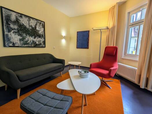 Alle Wohn und Schlafräume sind Klimatisiert und edelste Ausstattung Best Lage im Zentrum von Bad Liebenzell - KURPARK GEGENÜBER rd. 197 qm im 2. Obergeschoss Ein Gemeinschaftsraum mit Gäste WC, Personal WC und Teeküche stehen zur freien Verfügung! +++ Die Nebenkosten betragen mtl 500 EURO im Abschlag! +++ ENERGIE-PASS: Energie-Verbrauchs-Kennwert von 2018 liegt bei 71 kWh/(m²xa) und zeigt den SPARSAMEN-VERBRAUCH = grüne Zone - der Werteskala