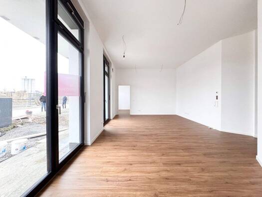 Die Wohnung befindet sich im Erdgeschoss (ohne Garten) eines modernen Neubaus und bietet eine Wohnfläche von ca. 57 qm. Sie besteht aus 2 Zimmern, darunter ein Schlafzimmer und ein großzügiges Badezimmer, ideal für Singles oder Paare.