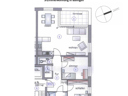 Terrassenwohnung zur Miete 850 € 3,5 Zimmer 98 m² Geschoss EG/3 frei ab sofort Alemannenstr. Niedereschach 78078