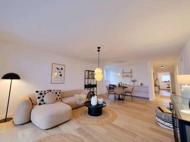 Wer träumt nicht davon, mitten in der Stadt zu wohnen und dennoch über eine eigene Terrasse zu verfügen? Diese moderne 4-Zimmer-Wohnung im Erstbezug vereint urbanes Lebensgefühl mit hohem Wohnkomfort auf einer Ebene. Im Erdgeschoss eines modernen Wohnhauses gelegen, überzeugt die Wohnung durch ihren nahezu barrierefreien Zugang und einen durchdachten Grundriss auf ca. 105 m². Der offen gestaltete Wohn-, Ess- und Kochbereich ist dank großer Fensterflächen angenehm hell und bietet direkten Zugang...