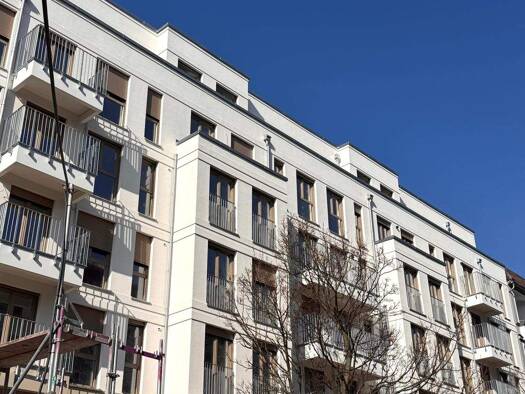 Das Ensemble aus zwei 5- und 6-geschossigen Gebäudeteilen überzeugt durch vielfältige, teilweise barrierefreie und moderne Grundrisse inkl. einiger Maisonettewohnungen. Mit Aufzügen vom Keller in alle Geschosse, großzügigen Balkonen, Terrassen oder Loggien und Spielflächen im Hof ist ein attraktiver Ort zum Wohnen im beliebten Prenzlauer Berg entstanden. Die Handschrift modern, klar, mit warmen Fassadenakzenten, großzügig und offen gestalteten Wohnungen und teilweise unerwartet weiten Ausblicke...