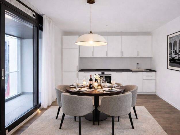 Diese hochwertige Wohnung befindet sich in einem neu erbauten Mehrparteienhaus und überzeugt durch ihre zeitgemäße Architektur sowie die ausgezeichnete Energieeffizienzklasse A+. Mit einer Wohnfläche von ca. 55 m² bietet sie optimal geschnittene Räume und modernen Wohnkomfort. Die Wohnung ist barrierefrei zugänglich und verfügt über ein Schlafzimmer, ein stilvolles Badezimmer, ein großzügiges Wohn- und Esszimmer mit integrierter, offener Küche sowie einen einladenden Balkon. Die moderne Einbauk...