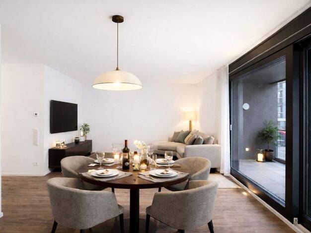 Herzlich willkommen in dieser exklusiven 2-Zimmer-Neubauwohnung im 1. Obergeschoss, die nach westen ausgerichtet ist und somit von reichlich Sonnenlicht durchflutet wird. Dieses idyllische Zuhause bietet nicht nur eine Loggia, sondern auch eine geniale Sicht auf den liebevollen und grün gestalteten Innenbereich. Auf der optimal genutzten Wohnfläche von ca. 50 m² entfaltet sich ein modernes Raumkonzept mit einer hochwertigen Ausstattung. Der lichtdurchflutete Wohn-/Essbereich mit offener Einbauk...
