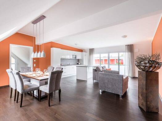 nklusive moderner Pantryküche inkl. Kühlschrank, Glaskeramik-Kochfeld und Mikrowelle mit Grillfunktion Inklusive einem praktischem Kleiderschrank vollausgestattetes Duschbad mit großformatigen Kerami...