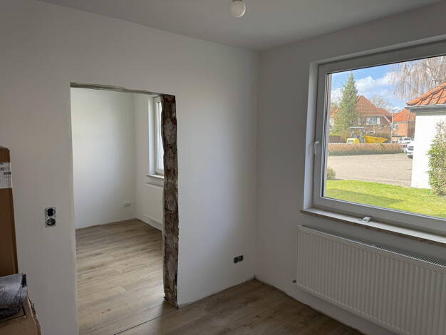 Die 2-Zimmer-Erdgeschosswohnung befindet sich in einem 4-Parteien-Haus. Die Wohnung wird gerade komplett frisch saniert. Ausgestattet wird die Wohnung mit weißen Zimmertüren und -zargen. Das Duschbad ist barrierefrei und hat neben einem Fenster auch die Möglichkeit eine Waschmaschine zu stellen. Eine neue Einbauküche wurde eingebaut und bietet viele Staumöglichkeiten, verfügt über sämtliche Geräte - wie Ceranfeld, Backofen, Umlufthaube, Kühlschrank einen Gefrierschrank und bietet Ihnen die Mögl...