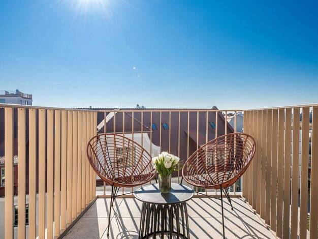 Patio Pasing - eine moderne und elegante (Ende 2025 fertig gestellte) Wohnanlage besticht mit ihrer modernen Gesamtgestaltung in angenehmer Nachbarschaft und stylischen Architektur. Die 45qm große 2 Zimmer Wohnung ist vollständig möbliert mit neuer hochwertiger EBK mit Geschirrspüler, Kühlschrank, Induktionskochfeld und Wäschetrockner. Die Küche ist ausgestattet mit sowohl Geschirr und Gläsern für 2 Personen als auch Toaster, Wasserkocher, Kochgeschirr sowie einer Nespresso Kaffeemaschine. Der ...