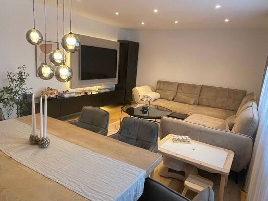 Zur möblierten Vermietung auf Zeit wird Ihnen diese hochwertig möblierte und frisch sanierte moderne Erdgeschosswohnung mit rund 76m² Wohnfläche, eigener Terrasse und zusätzlichen Abstellräumen/Nutzf...