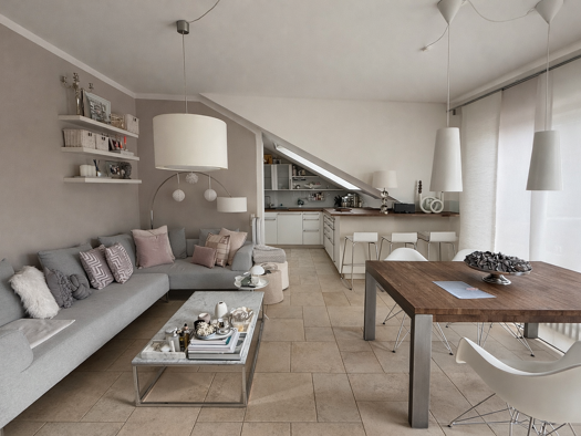 Traumhaft schöne und exklusiv ausgestattete 4-Zimmer-Wohnung im Dachgeschoss - Ihr neues Zuhause wartet auf Sie Willkommen in dieser äußerst hochwertig ausgestatteten 4-Zimmer-Wohnung im Dachgeschoss eines attraktiven Mehrfamilienhauses mit nur sechs Wohneinheiten. Ein moderner Aufzug sowie ein umfassender Hausmeisterservice sorgen für zusätzlichen Komfort und ein angenehmes Wohngefühl. Der großzügige und lichtdurchflutete Wohn- und Essbereich mit hohen Decken bildet das Herzstück der Wohnung. ...
