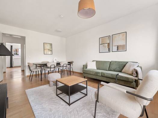 Die helle und modern ausgestattete Wohnung im 1. Obergeschoss wurde 2025 vollständig renoviert und bietet ideale Bedingungen für ein angenehmes WG-Leben. Alle drei Zimmer sind voll möbliert, lichtdur...