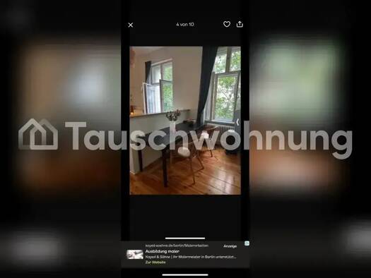 Es handelt es sich hierbei um ein Tauschangebot. (Anbieter-ID: 363952) sehr schöne, ruhige Altbau-Wohnung mit zwei großen Zimmern (WG-geeignet) und Dielenboden mit Balkon, Badewanne und einer Küche, ...