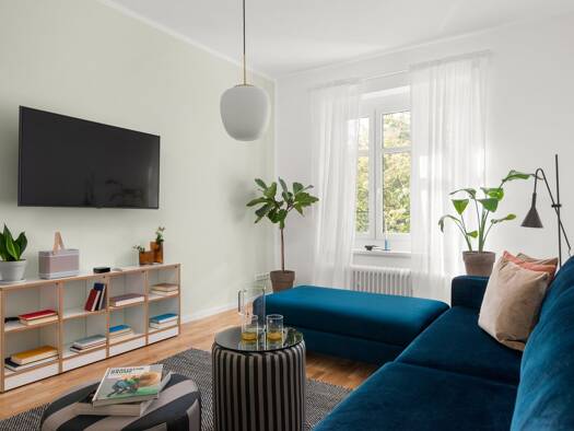 Diese stilvolle Wohnung in Berlin-Neukölln bietet eine gelungene Kombination aus Komfort, Qualität und urbanem Wohnen. Mit hochwertigen Materialien gestaltet und geschmackvoll möbliert, schafft sie e...