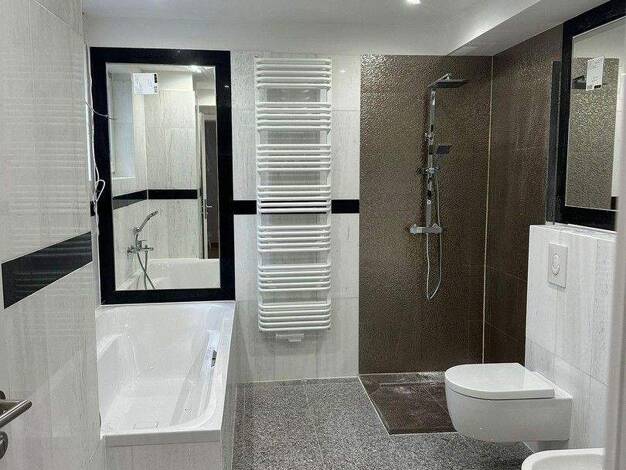 Diese geräumige 90 qm große Wohnung bietet ein komfortables Wohnerlebnis mit 2 Schlafzimmern und 2 Badezimmern, ausgestattet mit Badewanne und Dusche. Genießen Sie den Komfort eines Wohn- und Esszimm...