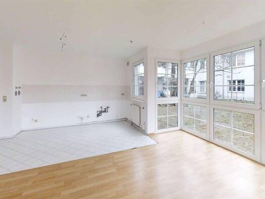 Sehr hell und lichtdurchflutet präsentiert sich die elegante Erdgeschosswohnung mit offener Küche. Große Fensterfronten bringen Weite und bieten schöne Ausblicke, ein edler Holzboden schafft Behaglichkeit - hier macht das Wohnen Freude. Die großzügige Terrasse bietet viel Platz und lädt zum Verweilen: hier genießt man im Sommer einen kühlen Drink!