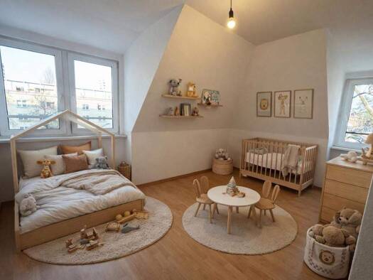 Diese großzügige 4-Zimmer-Wohnung bietet kein Wohnen von der Stange, sondern eine außergewöhnliche, fließende Raumgestaltung über zwei Ebenen. Die Kombination aus weichen Linien, großen Fensterfläche...