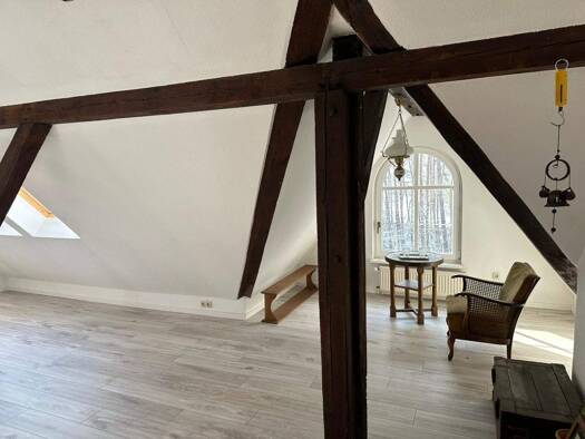 Die Wohnung befindet sich im DG (Dachschrägen) in einem MFH in ruhiger Wohngegend am Wald und somit im Grünen. Die Beheizung erfolgt per Zentralheizung. Eine Busverbindung ist fußläufig vorhanden.
